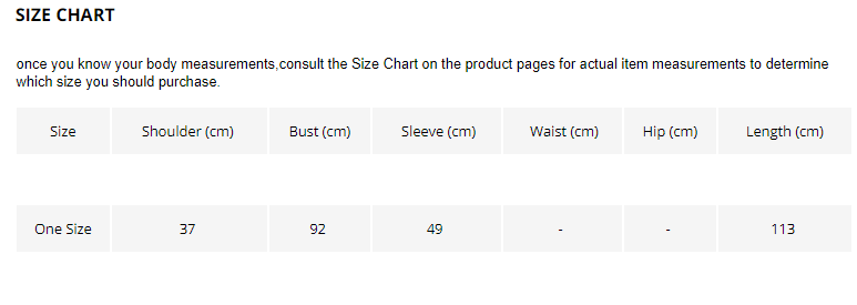 Bust 92CM shoulder width 37CM